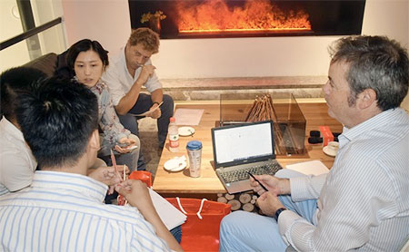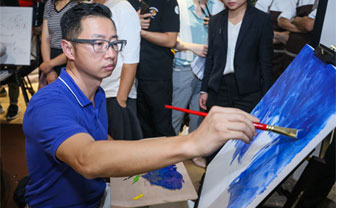 活動(dòng)還特別設(shè)置了油畫創(chuàng)作環(huán)節(jié),讓設(shè)計(jì)師們?cè)诜泵Φ墓ぷ髦喃@得身心的愉悅。李鷹先生、伊瓦諾先生和藝術(shù)家CAMILO CADENA先生、郁一一女士藝術(shù)家圍坐在圓形壁爐上認(rèn)真創(chuàng)作,仿佛置身于戶外大自然中,獲得了靈感與創(chuàng)意的來源。